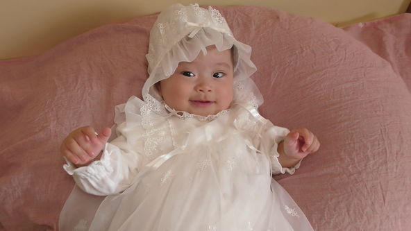 Cute Baby Model Wearing White Baby Dress, Just a moment a wink